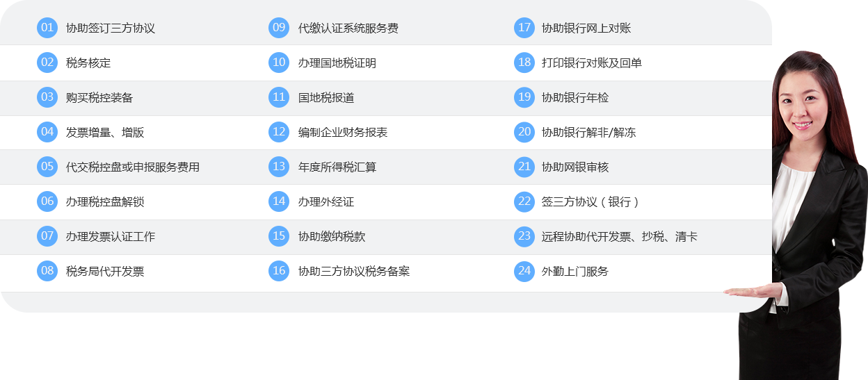 詳細的服務內(nèi)容,滿足您的賬務需求